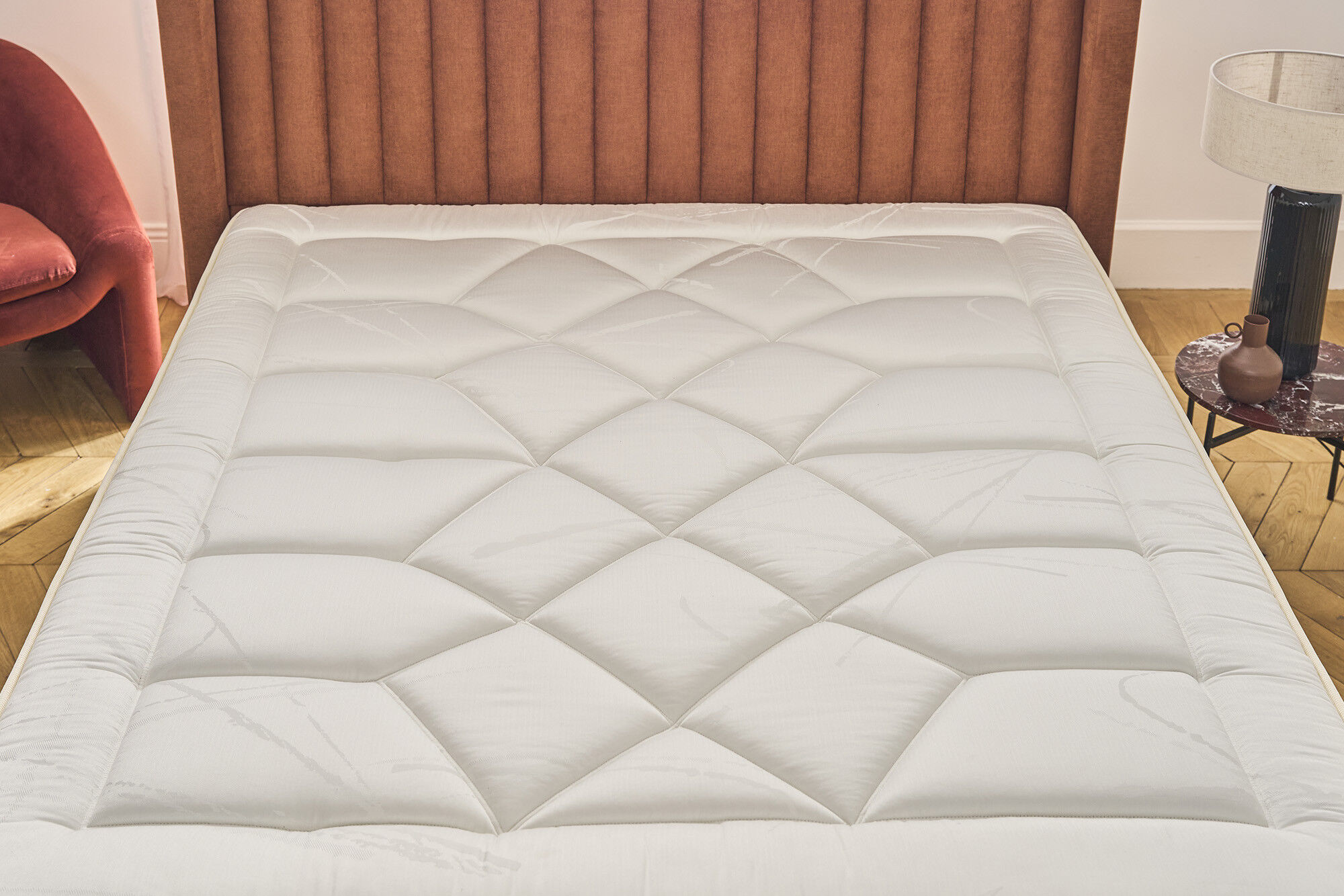 Et en plus, les fibres de ce tissus sont hypoallergéniques, antibactériennes, thermorégulatrices. C’est une matière d’une grande modernité qui se retrouve sur les 2 faces des matelas et sur la plate-bande.
