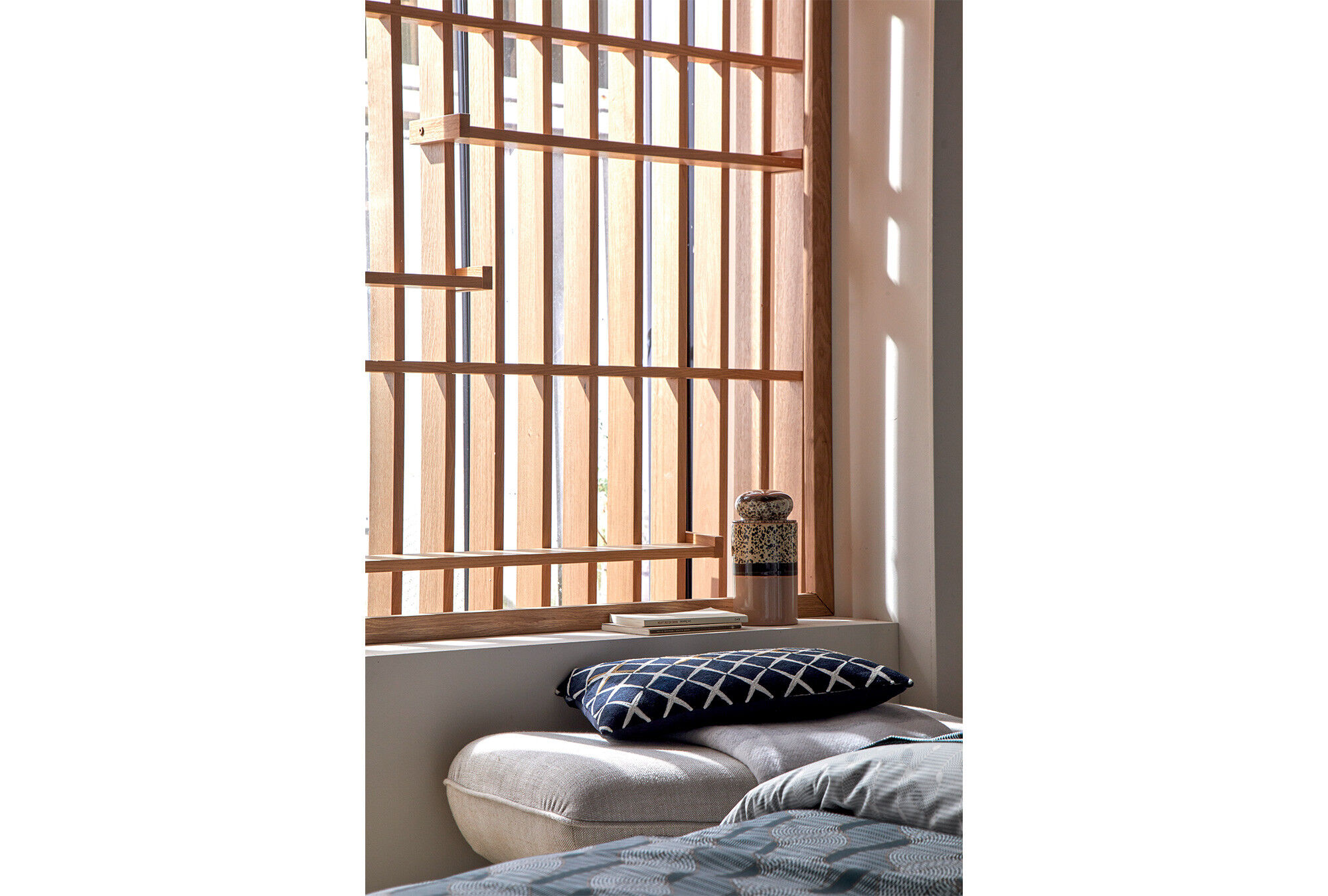 Une parure réversible, la Tempo Marine de Blanc des Vosges est en percale de coton 80 fils/cm². Son style moderne avec ses motifs graphiques apporte caractère et raffinement à votre chambre. Elle est constituée d’une housse de couette et de 2 taies d’oreiller carrées.