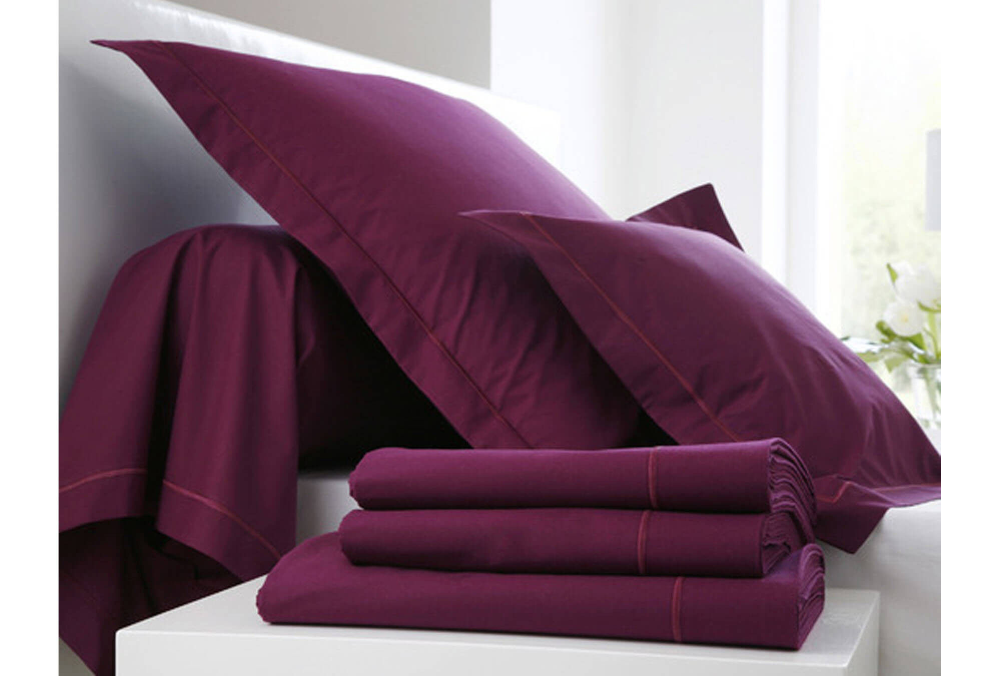 Une taie d'oreiller très qualitative, tissée en percale de coton des Vosges 80 fils/cm², douce, soyeuse et résistante. Très large choix de coloris pour se coordonner avec votre parure.